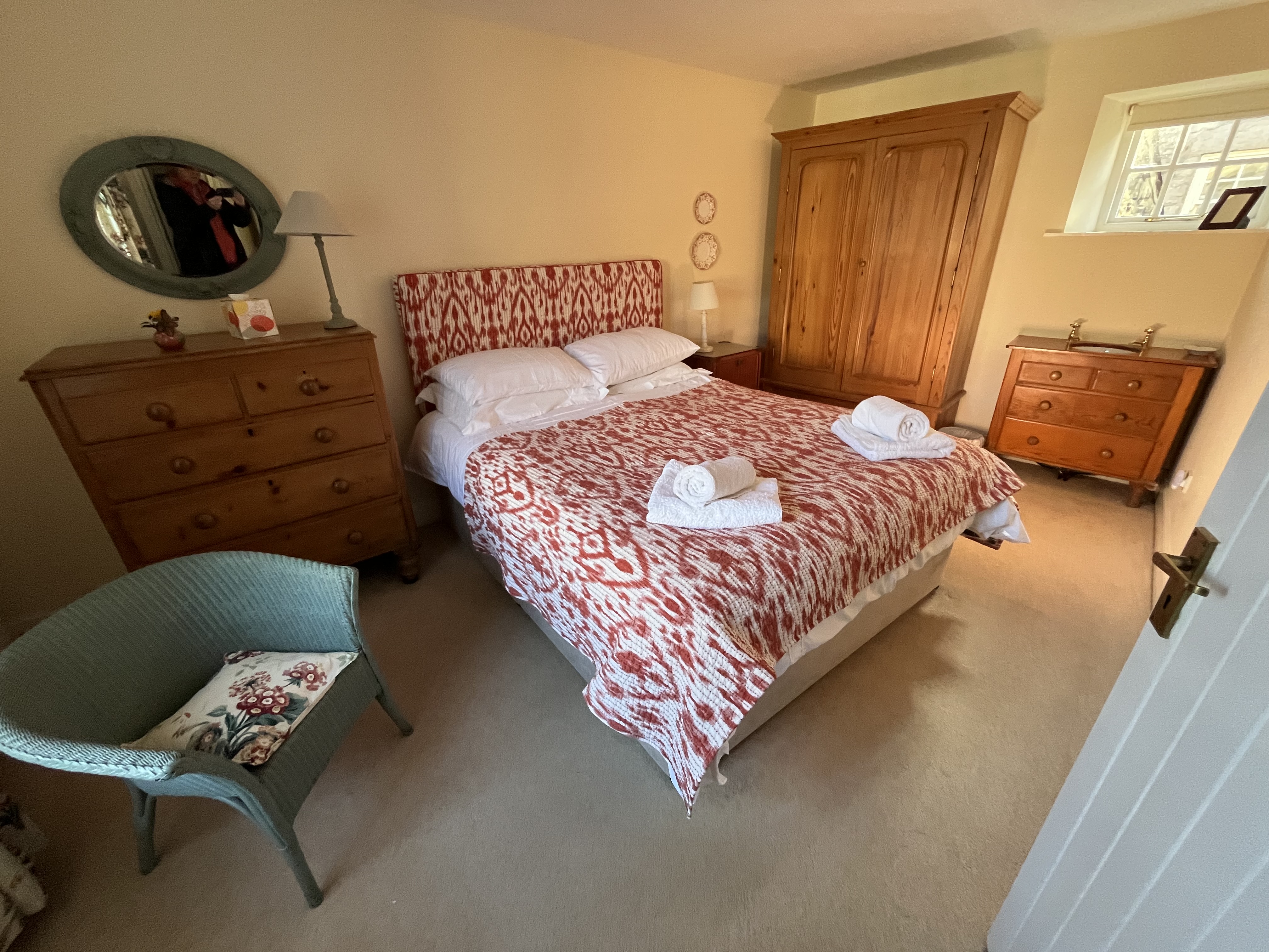 Three bedrooms occupy the charmingly-converted stables and include one king-sized bed, one double bed and one full-sized bunk bed. The bathroom has a bath, wash hand basin and toilet and there’s also a separate shower room.